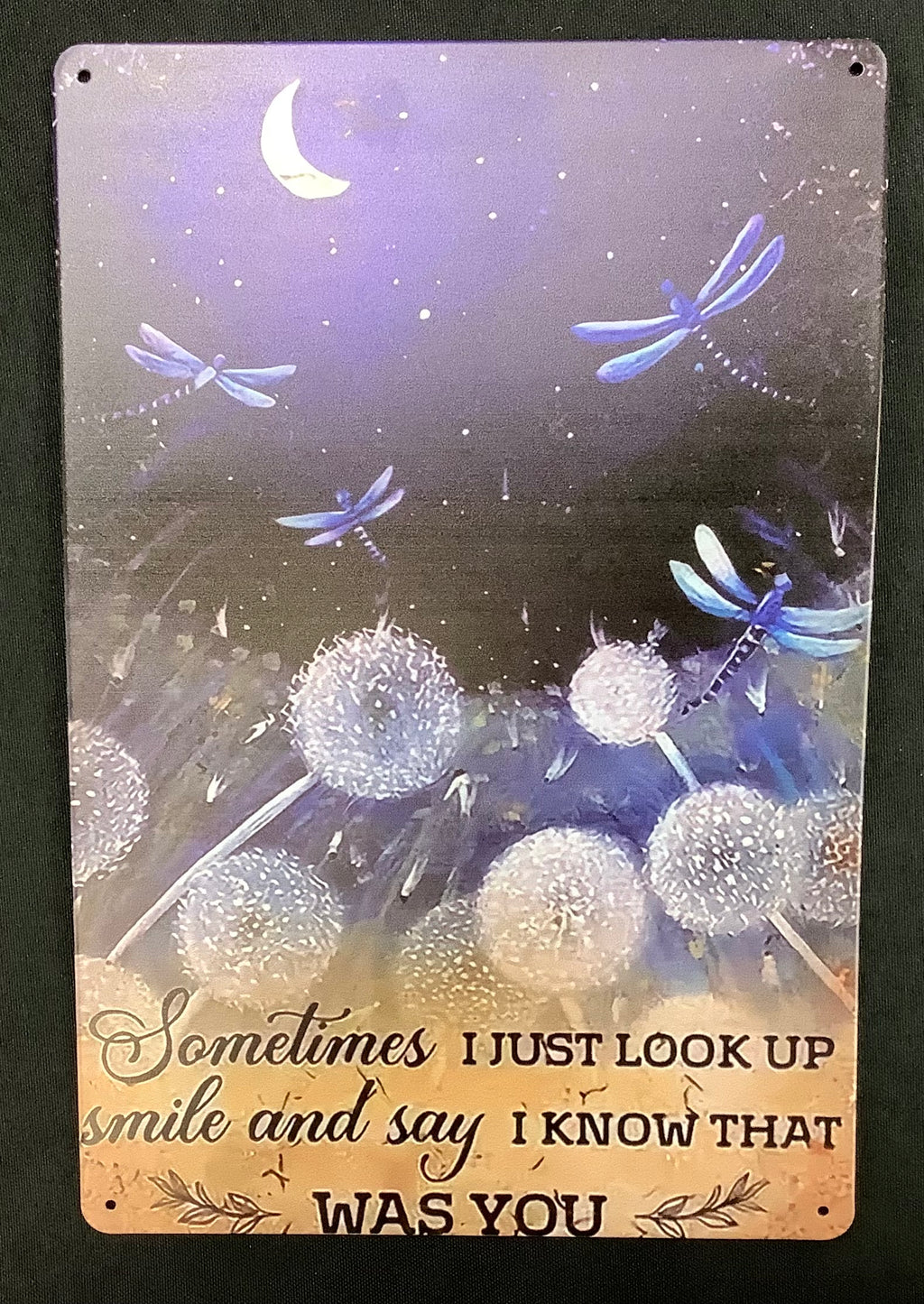 Sometimes I Just Look Up (Blue dragonflies) Metal Plaque Sign